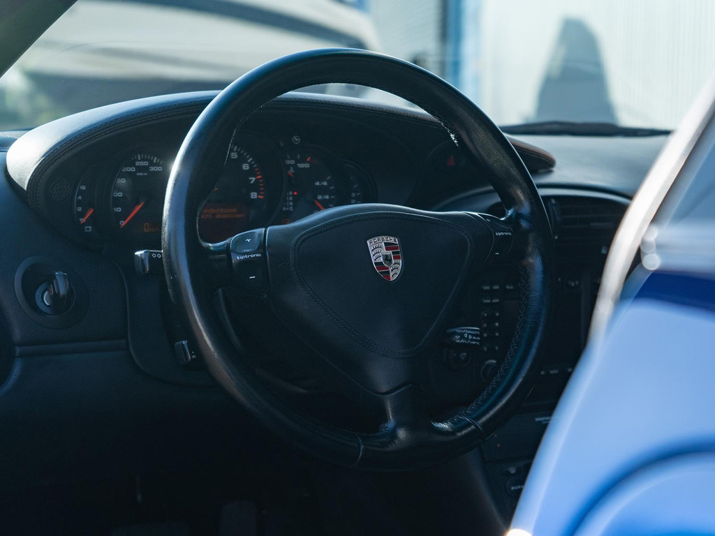 Deze Porsche 911 Turbo (996) uit 2001, uitgevoerd in het zeldzame Lapisblauw metallic, behoort tot de meest gewaardeerde uitvoeringen binnen de 996-familie. De 3.6 Turbo is uitgerust met de befaamde Mezger-motor, geliefd om zijn betrouwbaarheid, technische puurheid en motorsportafkomst.